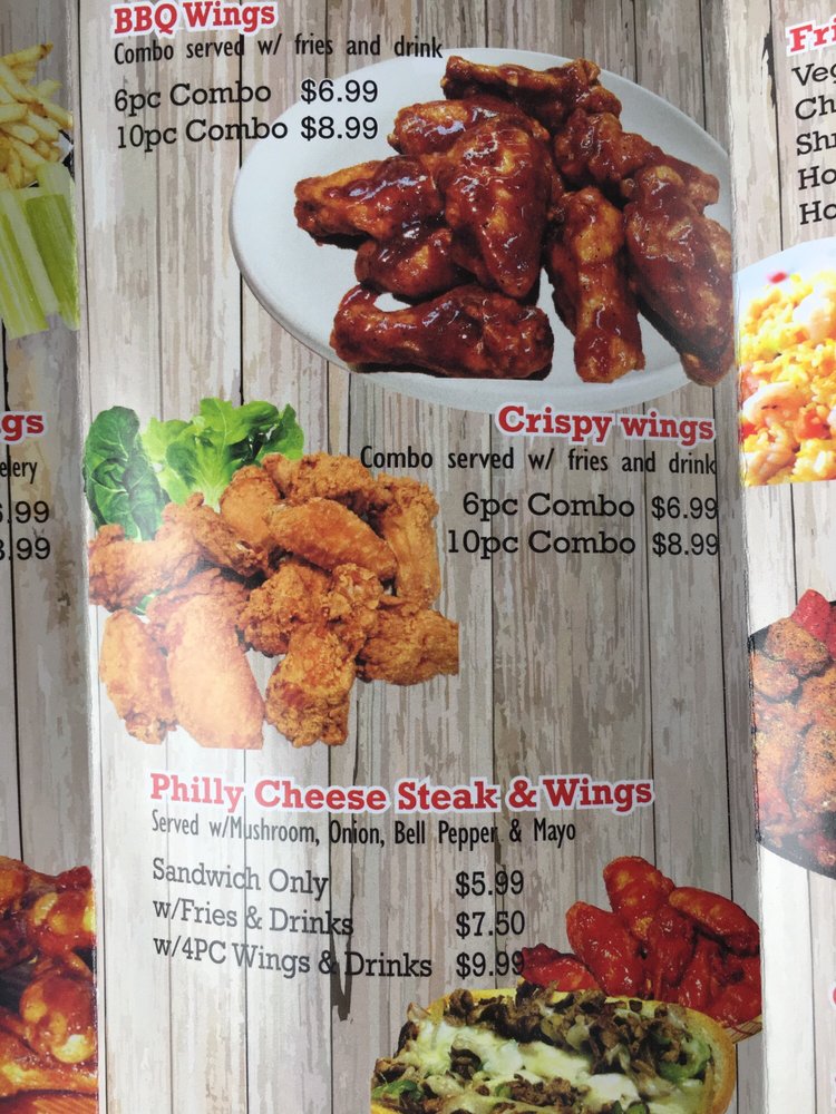 Philly Cheese Steak Fries, 4 Pieces Wings and Drink
